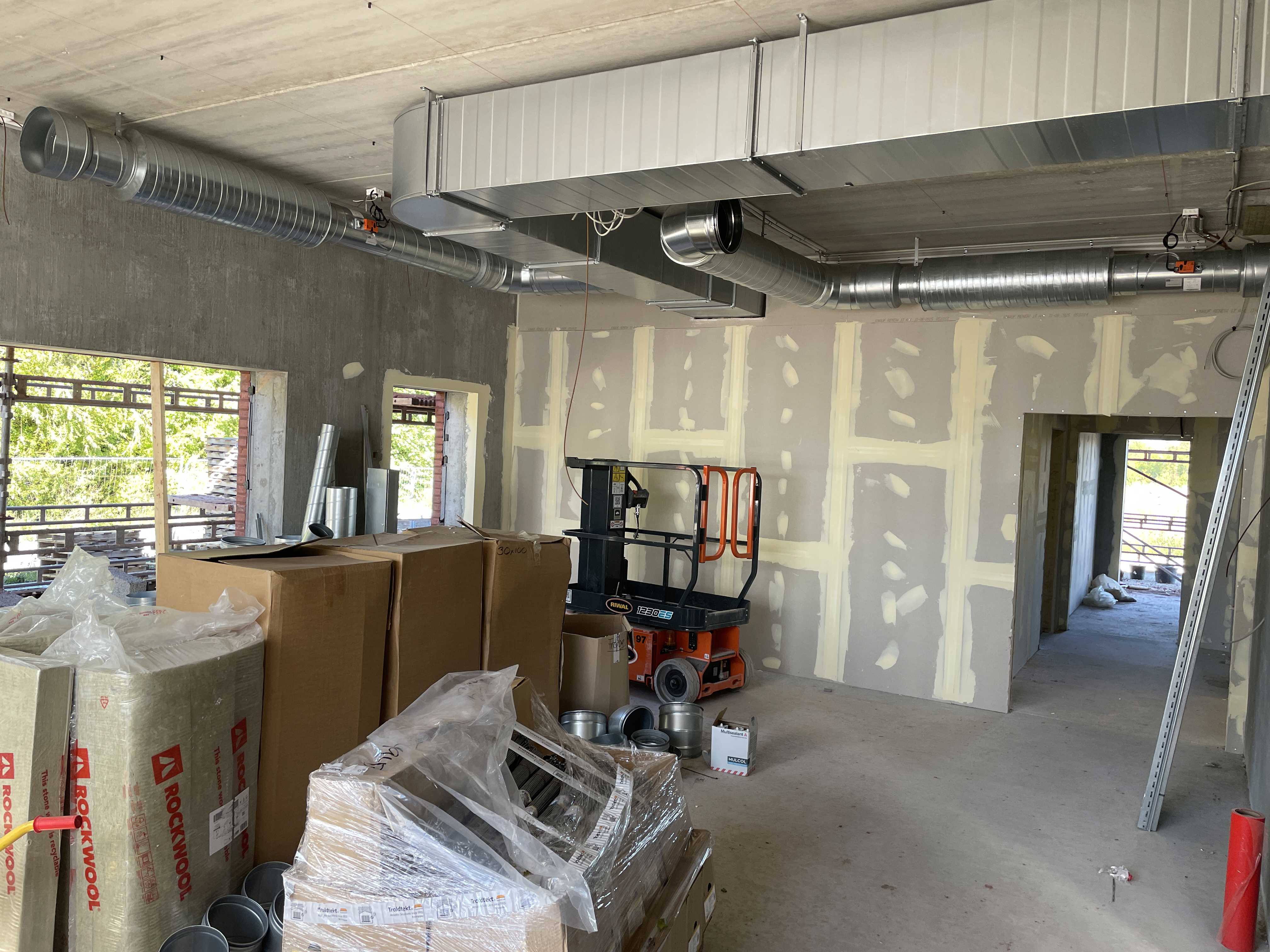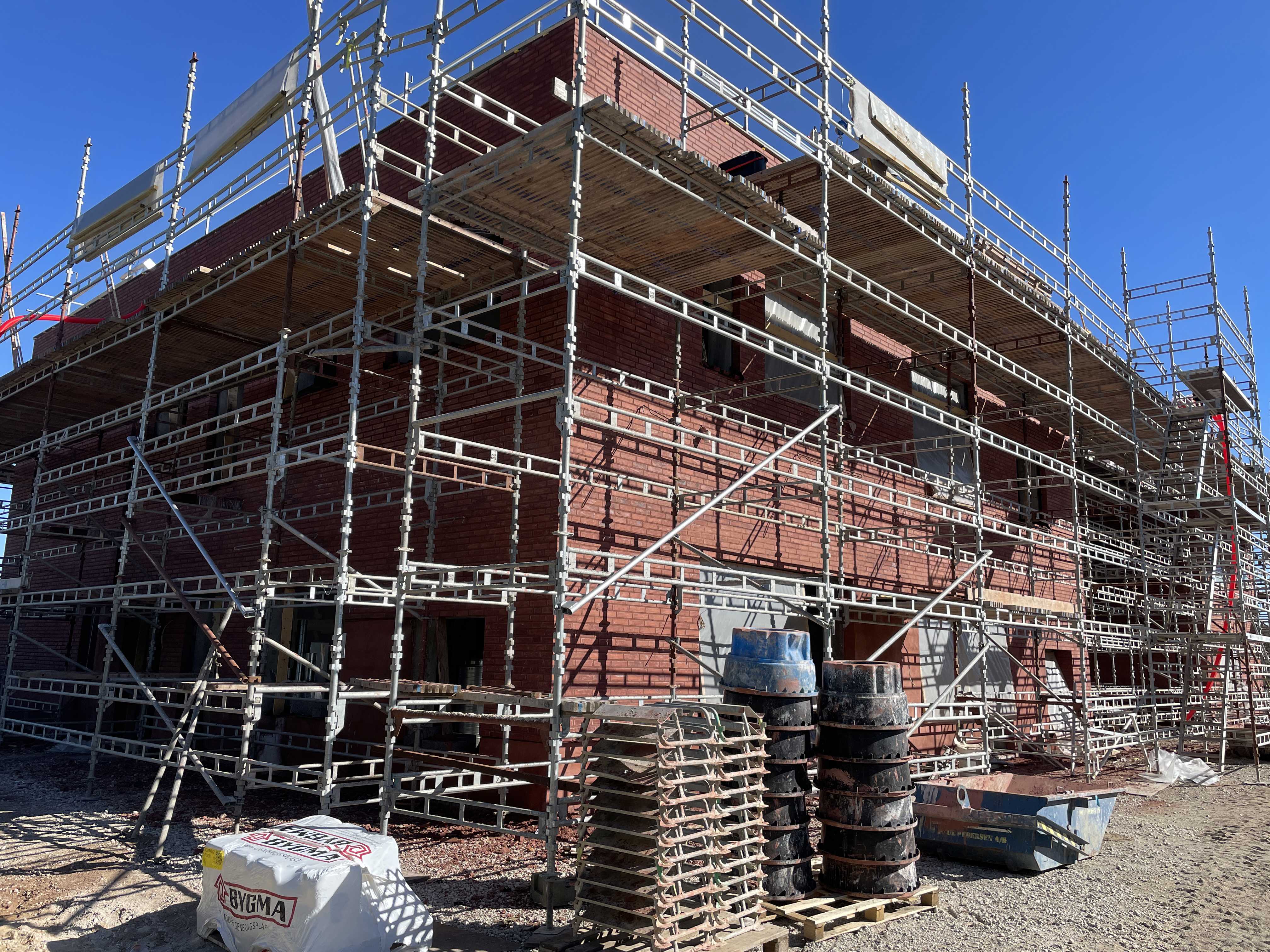 Byggeriet begynder at ligne et hus, som vi glæder os ualmindeligt meget til at flytte ind i. Vi kan allerede forestille os, hvordan stuerne kommer til at se ud og hvor meget god pædagogik vi kan tilbyde vores fantastiske børn i disse flotte lokaler placeret i så naturskønne omgivelser.